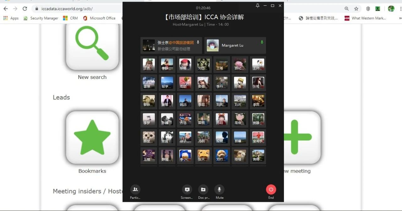 疫情期間MICE企業(yè)苦練內(nèi)功,中旅會(huì)展充分發(fā)揮主觀能動(dòng)性,利用數(shù)字化平臺(tái)聯(lián)合諸多合作伙伴組織線上培訓(xùn),ICCA作為中旅會(huì)展重要合作伙伴之一,2020年4月14日,雙方開展了ICCA線上數(shù)據(jù)庫培訓(xùn),詳盡剖析了ICCA強(qiáng)大數(shù)據(jù)庫功能以及作為ICCA會(huì)員如何享有數(shù)據(jù)分析報(bào)告及參與ICCA活動(dòng)競(jìng)標(biāo)等。線上參與人數(shù)眾多,引起國內(nèi)外行業(yè)同仁的廣泛關(guān)注。