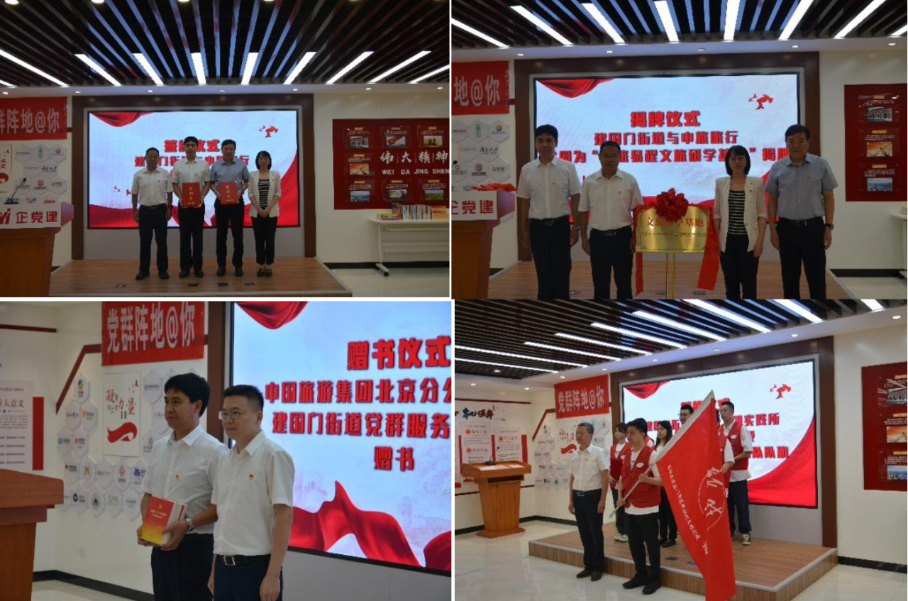 主會(huì)場(chǎng)活動(dòng)中,建國(guó)門街道與中旅旅行舉辦了合作簽約儀式,共同為“中旅易程文旅研學(xué)基地”揭牌,中旅易程現(xiàn)場(chǎng)進(jìn)行了建國(guó)門街道文旅產(chǎn)品發(fā)布及展演。中國(guó)旅游集團(tuán)北京分公司黨委向建國(guó)門街道黨工委贈(zèng)書,并從集團(tuán)各事業(yè)群選拔出青年代表做“文明旅游承諾”,由建國(guó)門街道新時(shí)代文明實(shí)踐所向中旅志愿服務(wù)隊(duì)授“新時(shí)代文明實(shí)踐隊(duì)”旗,推廣文明旅游理念,倡導(dǎo)社會(huì)主義核心價(jià)值觀,落實(shí)主題教育為人民群眾辦實(shí)事的要求。